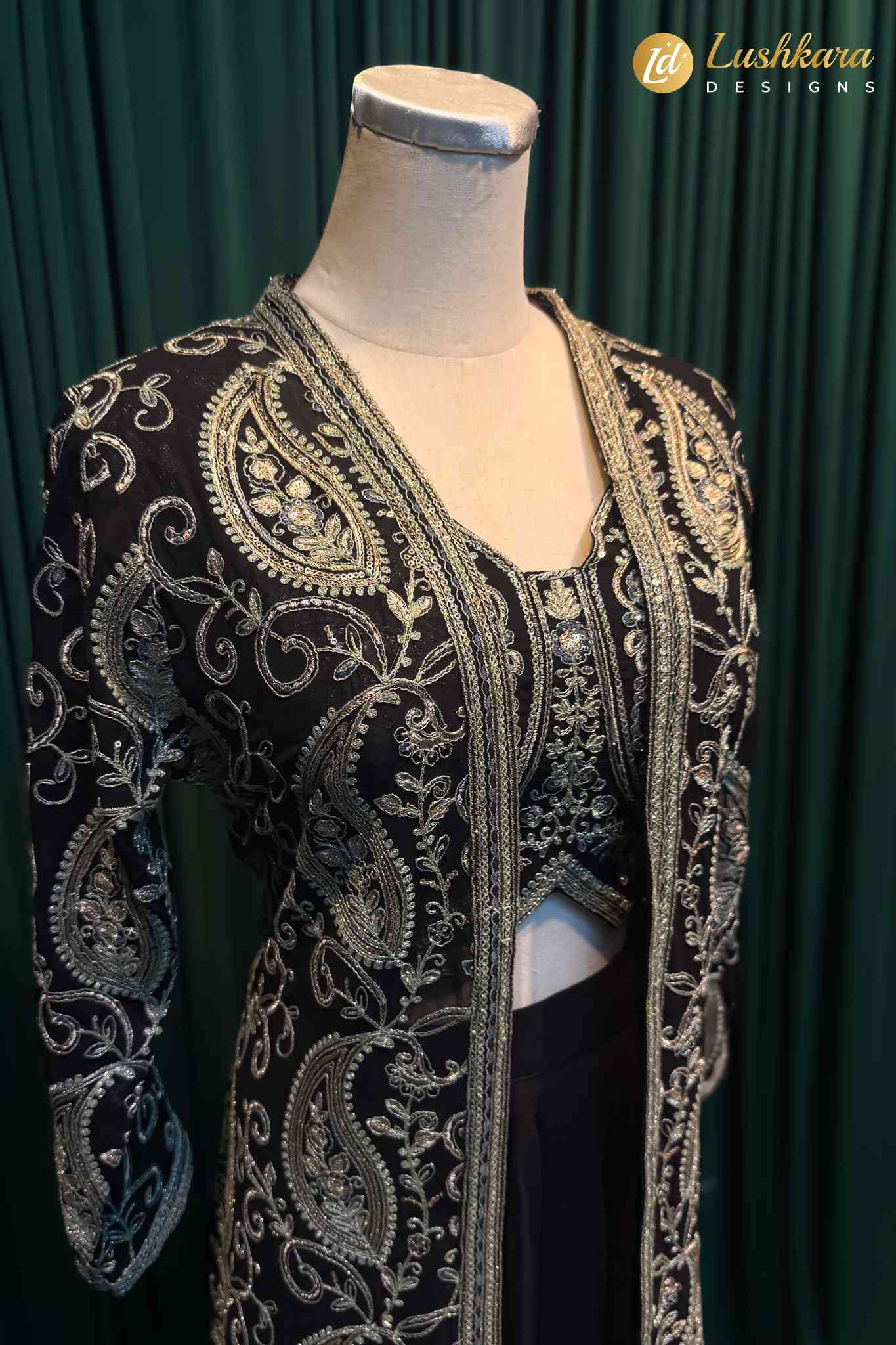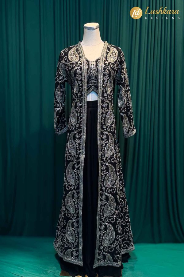 Dupatta/Jacket: Long embroidered front-open jacket included