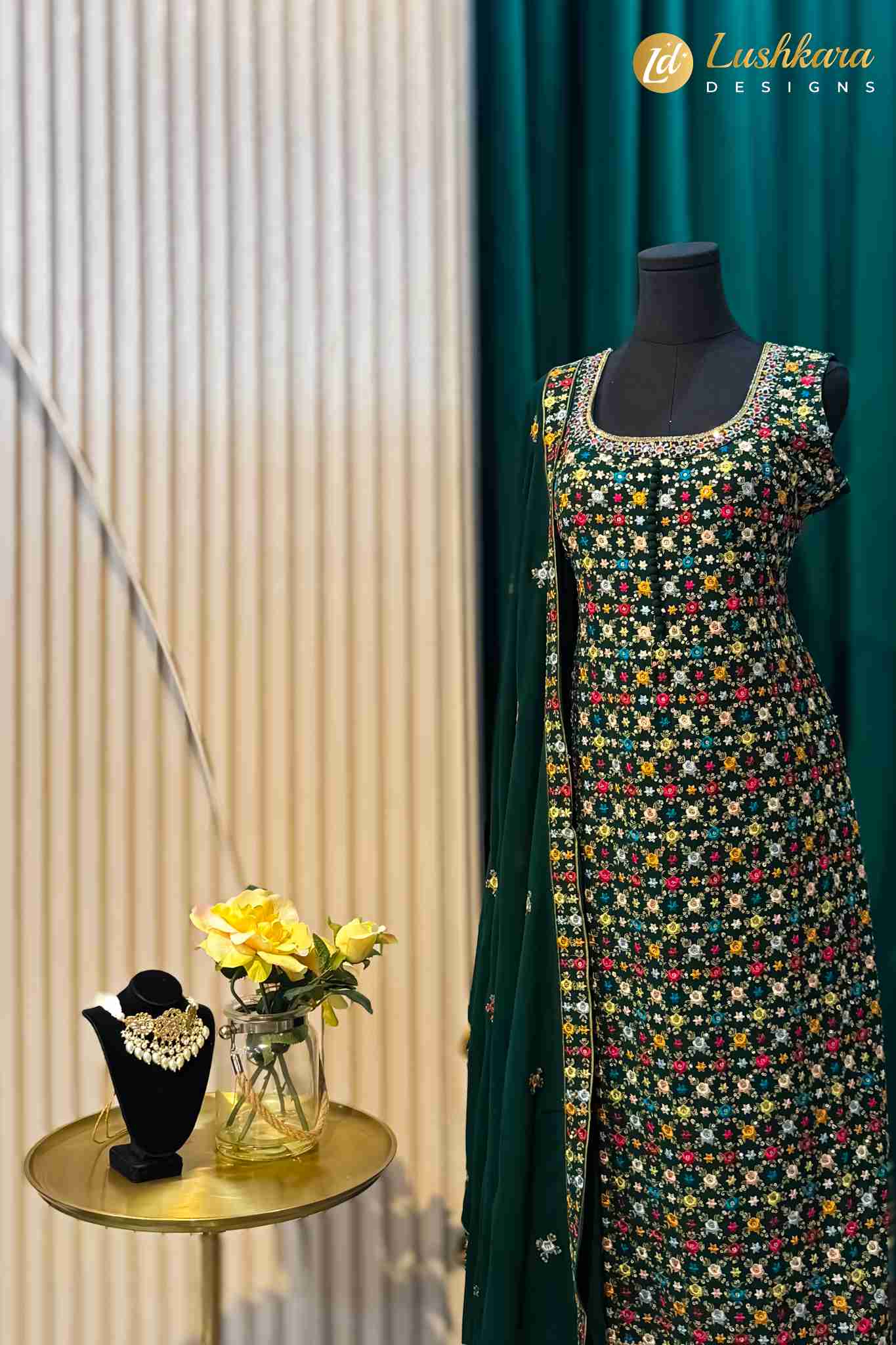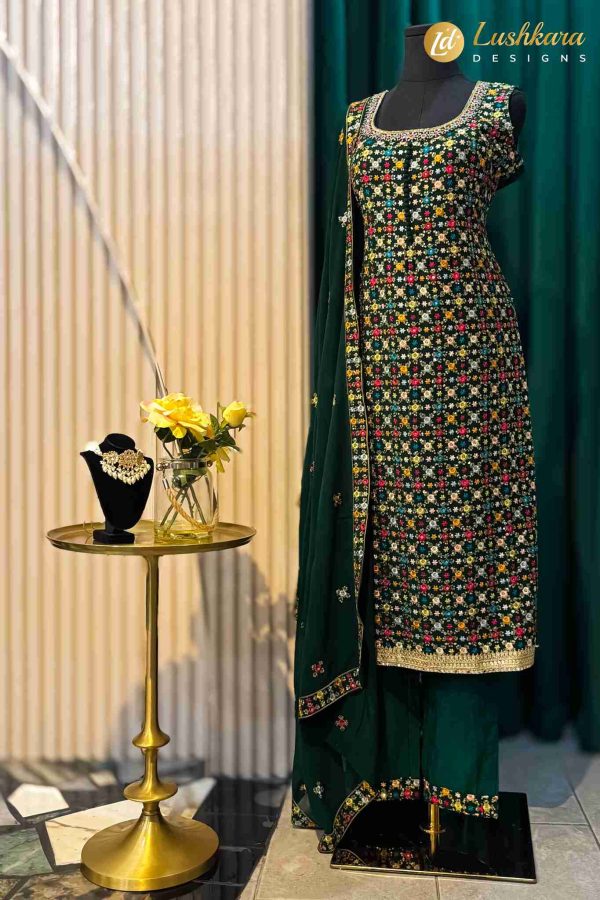 Dupatta: Included โ matching deep green dupatta with embroidered border accents