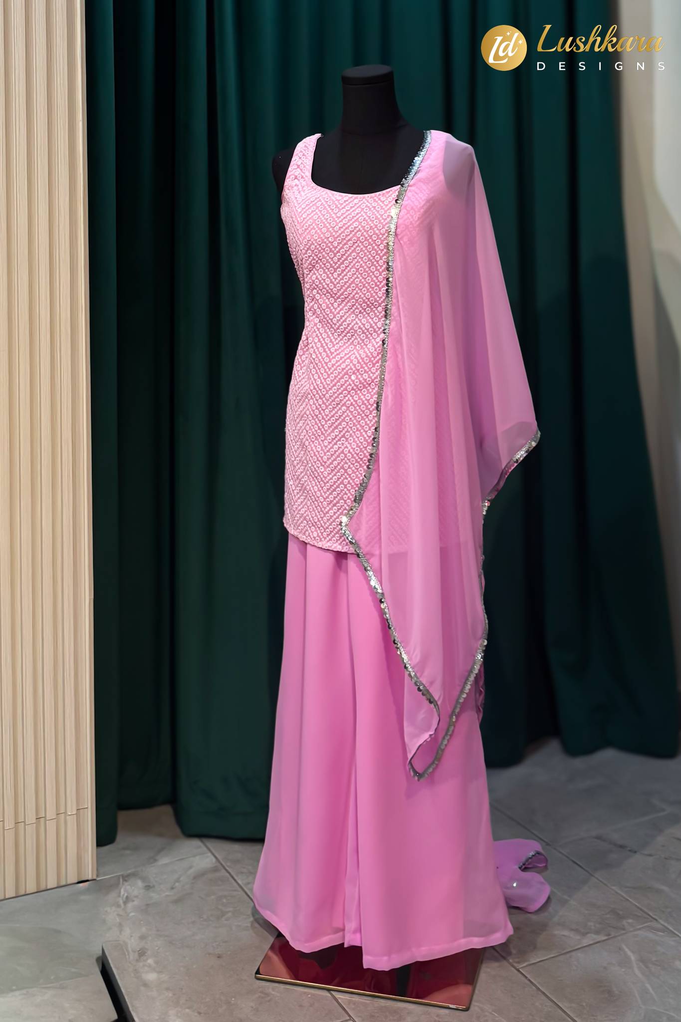Lushkara Graceful Embroidered Kurta Palazzo Set with Flowing Dupatta featuring intricate embroidery, a flowing silhouette, and a graceful dupatta.