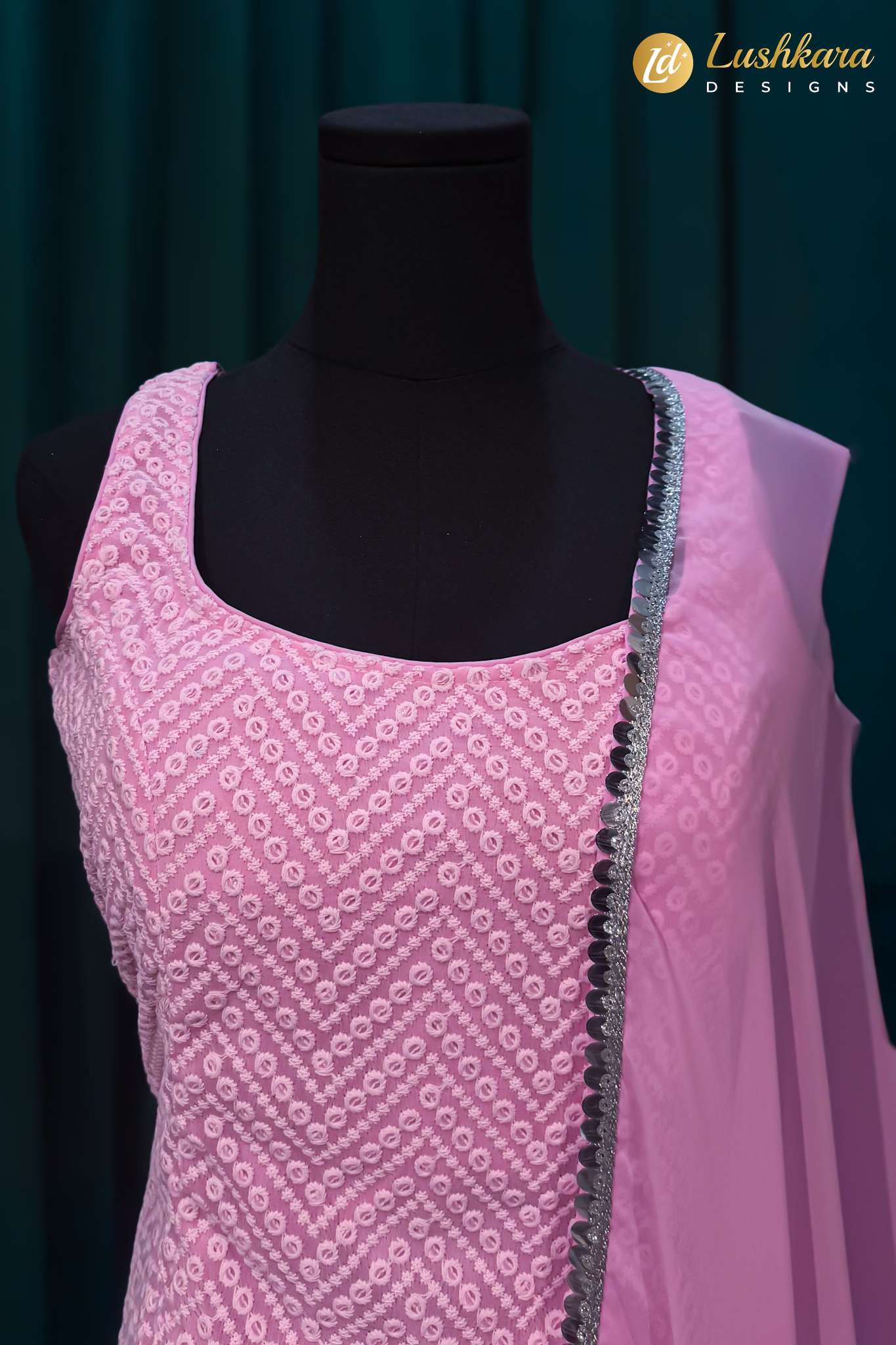 Lushkara Graceful Embroidered Kurta Palazzo Set with Flowing Dupatta