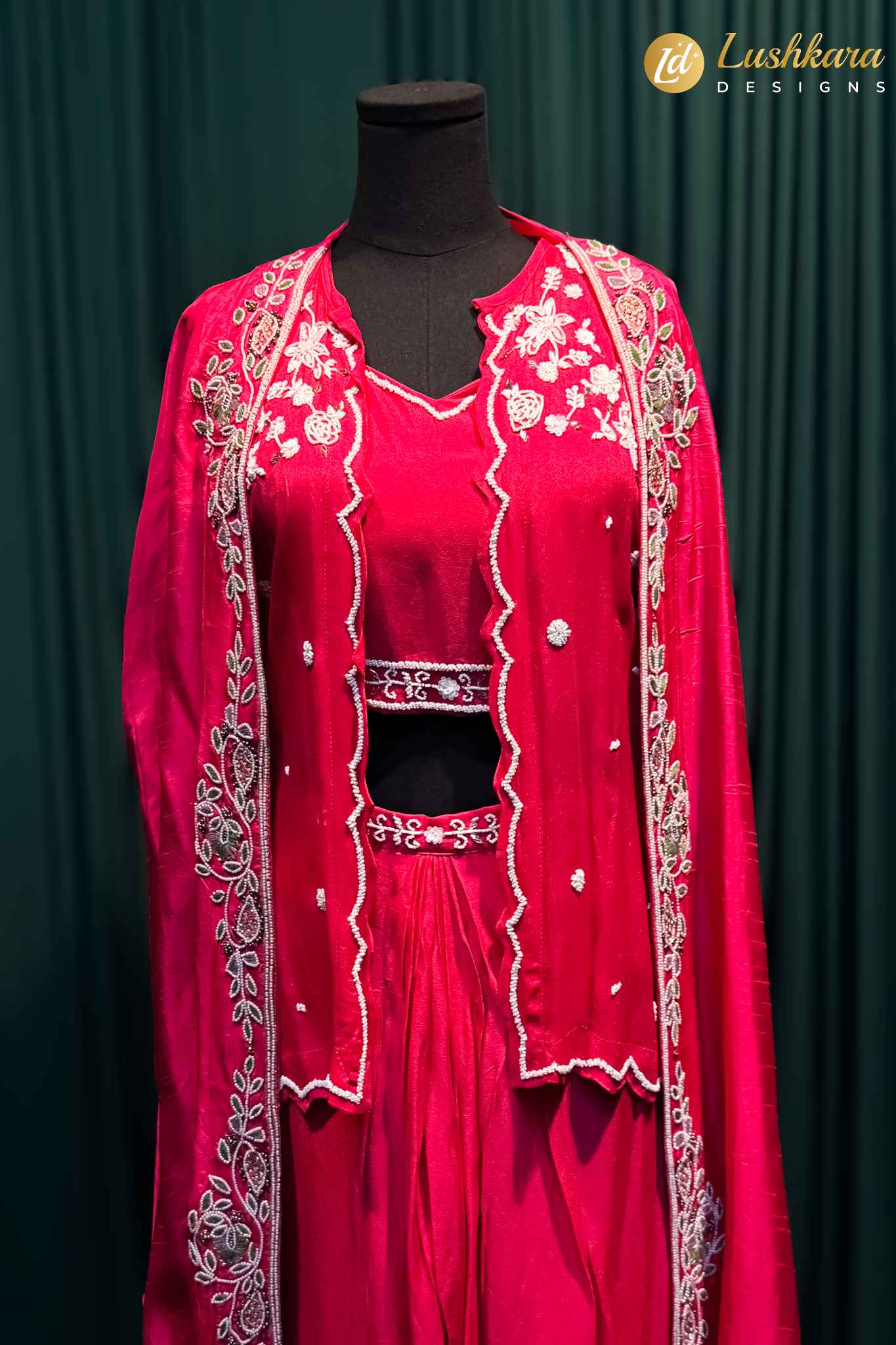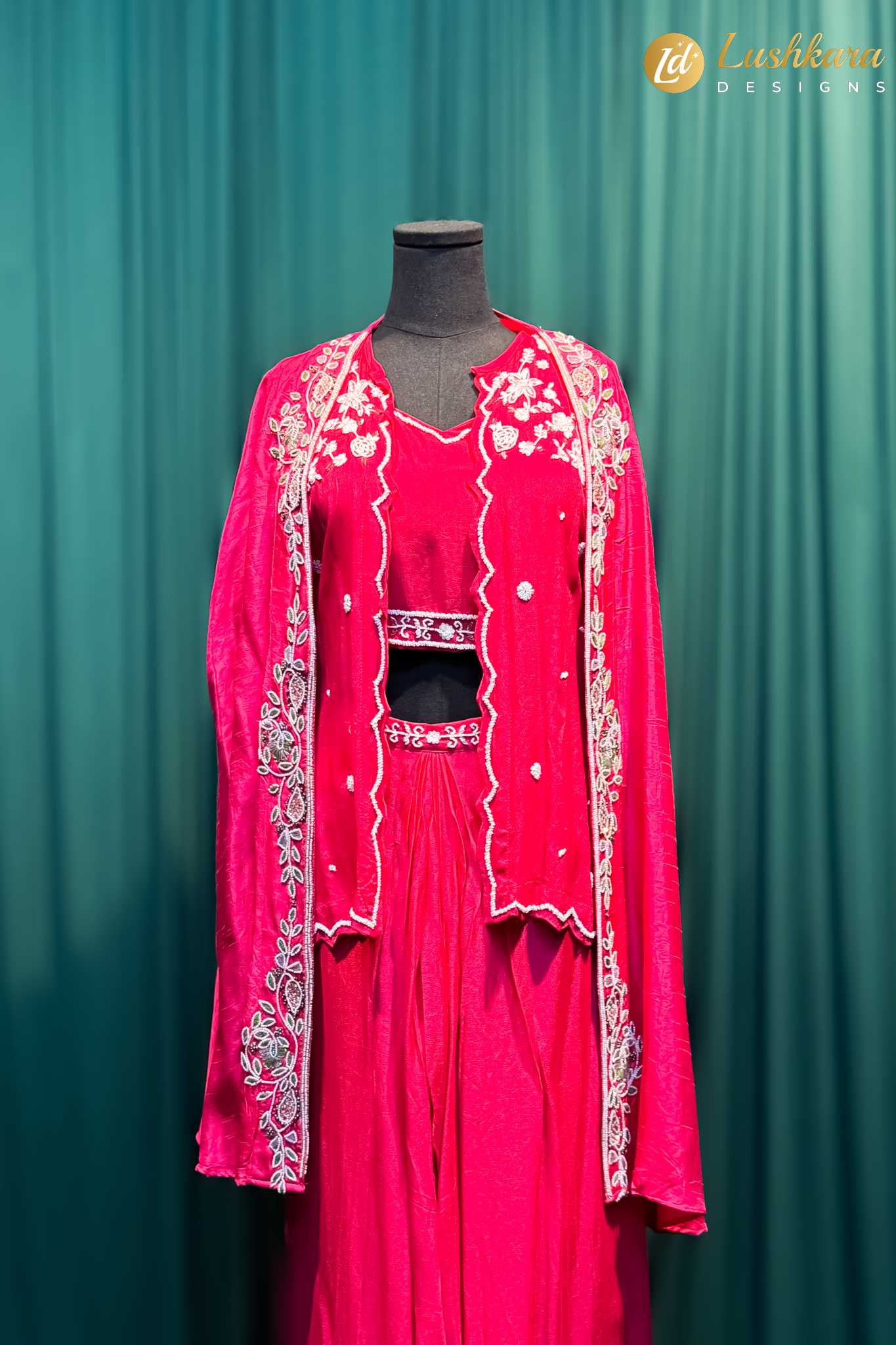 Dupatta: Comes with an attached embroidered cape (no separate dupatta)