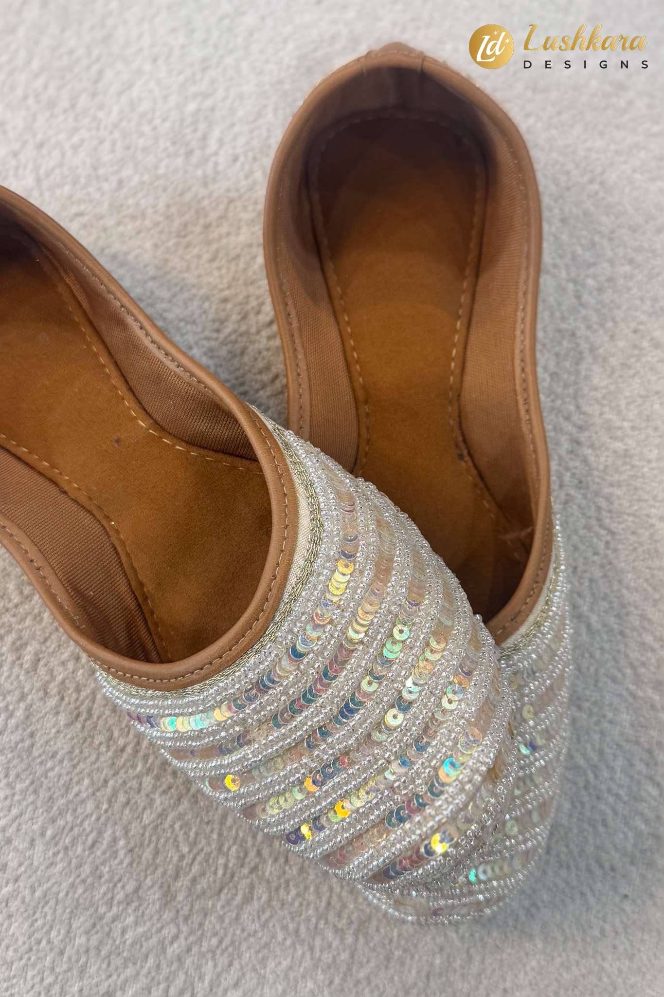 Color: Ivory with iridescent sequin shine