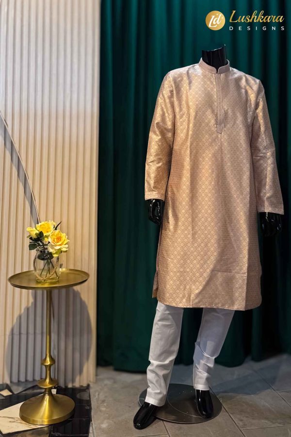 Lushkara Lavender Gold Embroidered Kurta for Men, Ideal for weddings, receptions, festive celebrations, and traditional occasions.