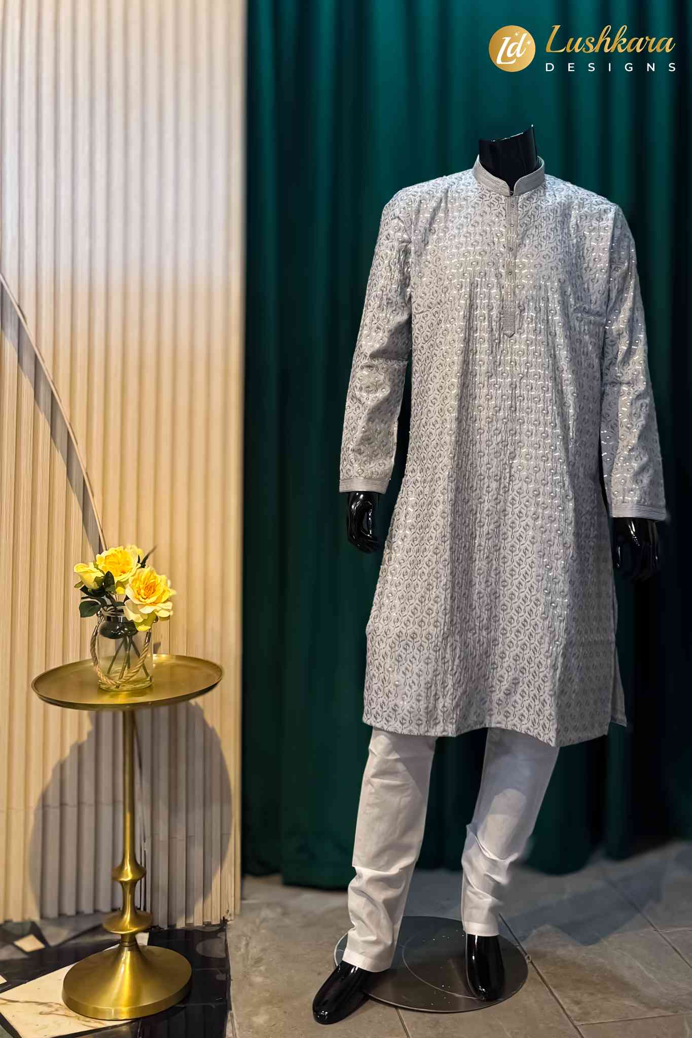 Fabric: Premium embroidered fabric with a smooth, elegant finish
