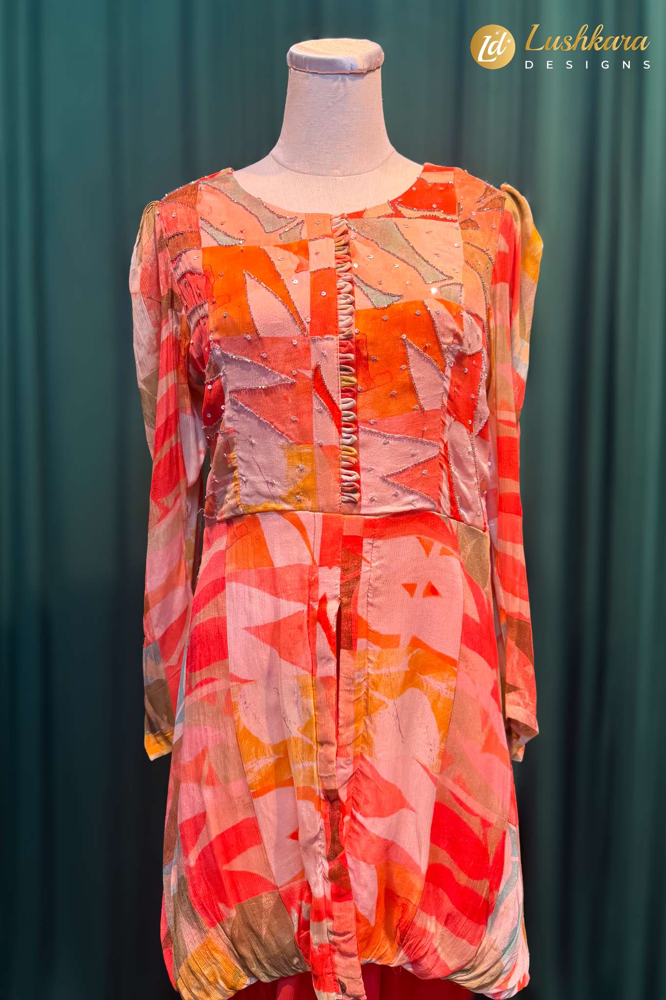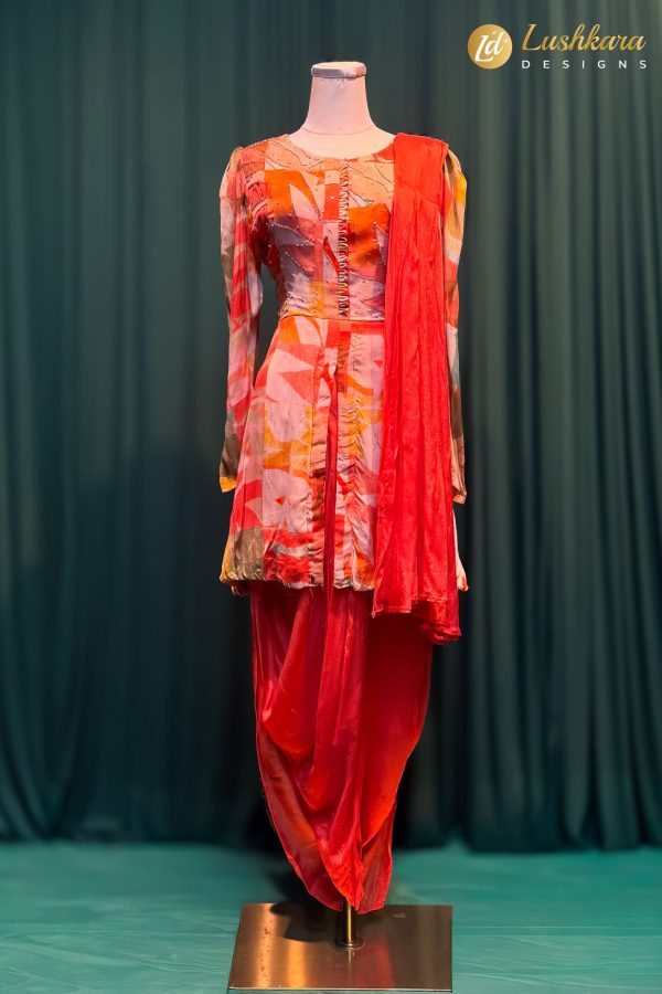 Lushkara Abstract Print Kurta Dhoti Set with Dupatta ,ย  Perfect for receptions, cocktail parties, and modern festive occasions.