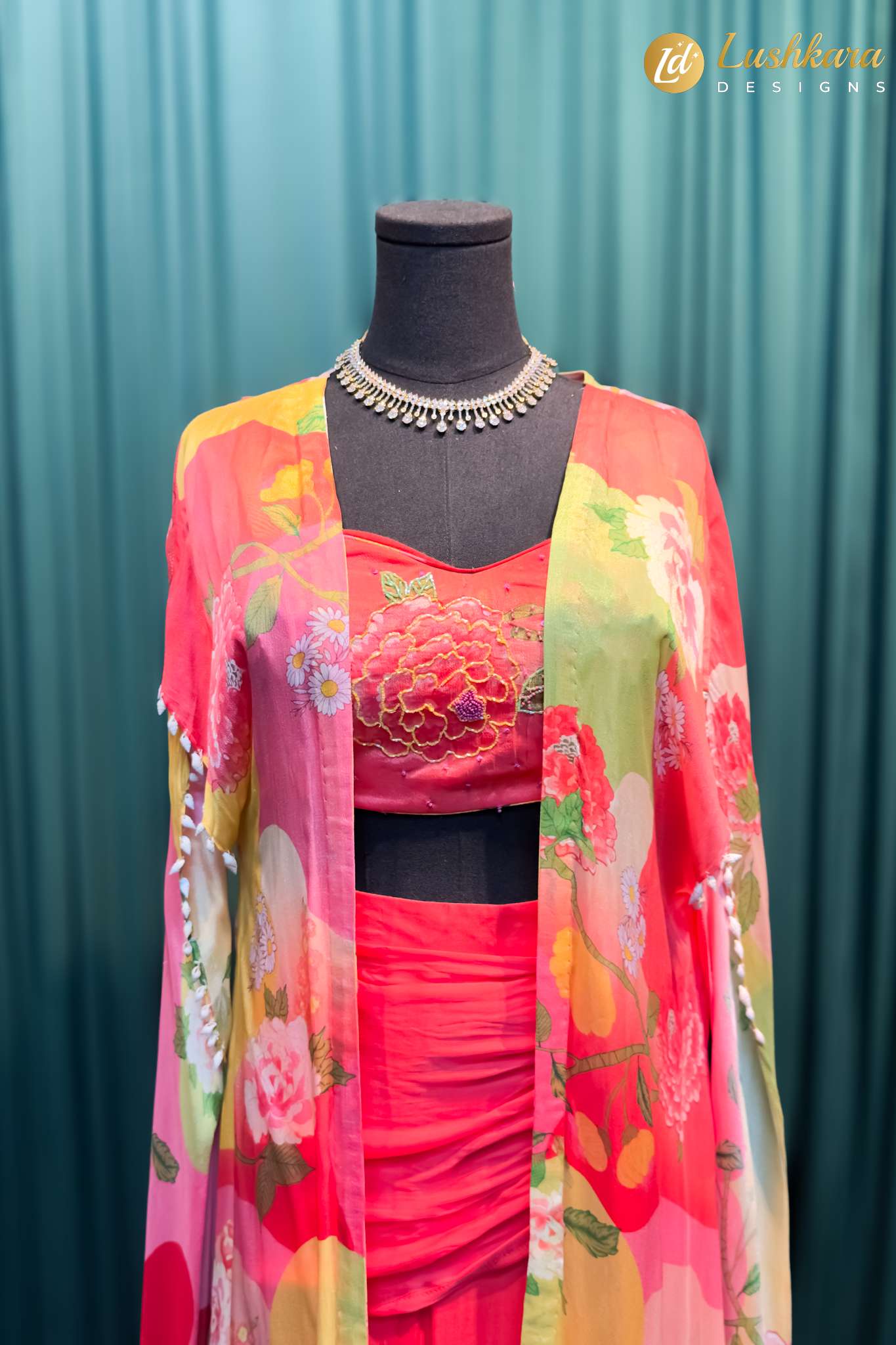 Fabric: Soft georgette drape skirt & printed flowy cape