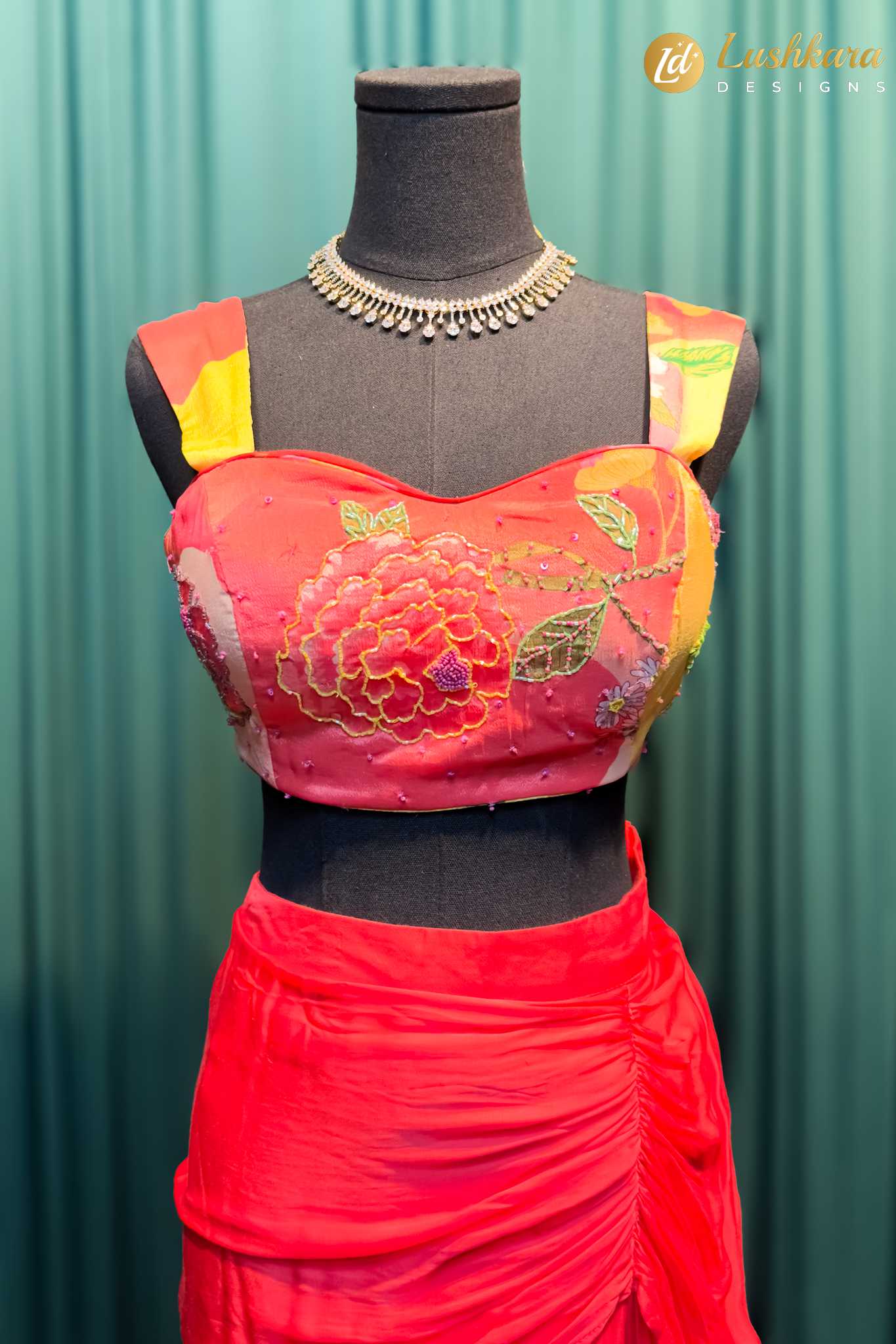 Color: Red base with multicolor floral prints