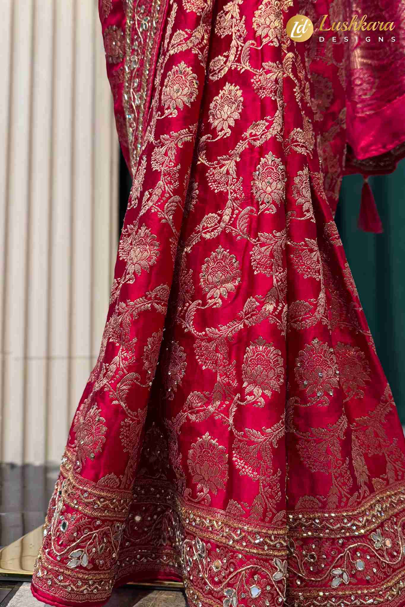 Work: Intricate zari and traditional woven detailing