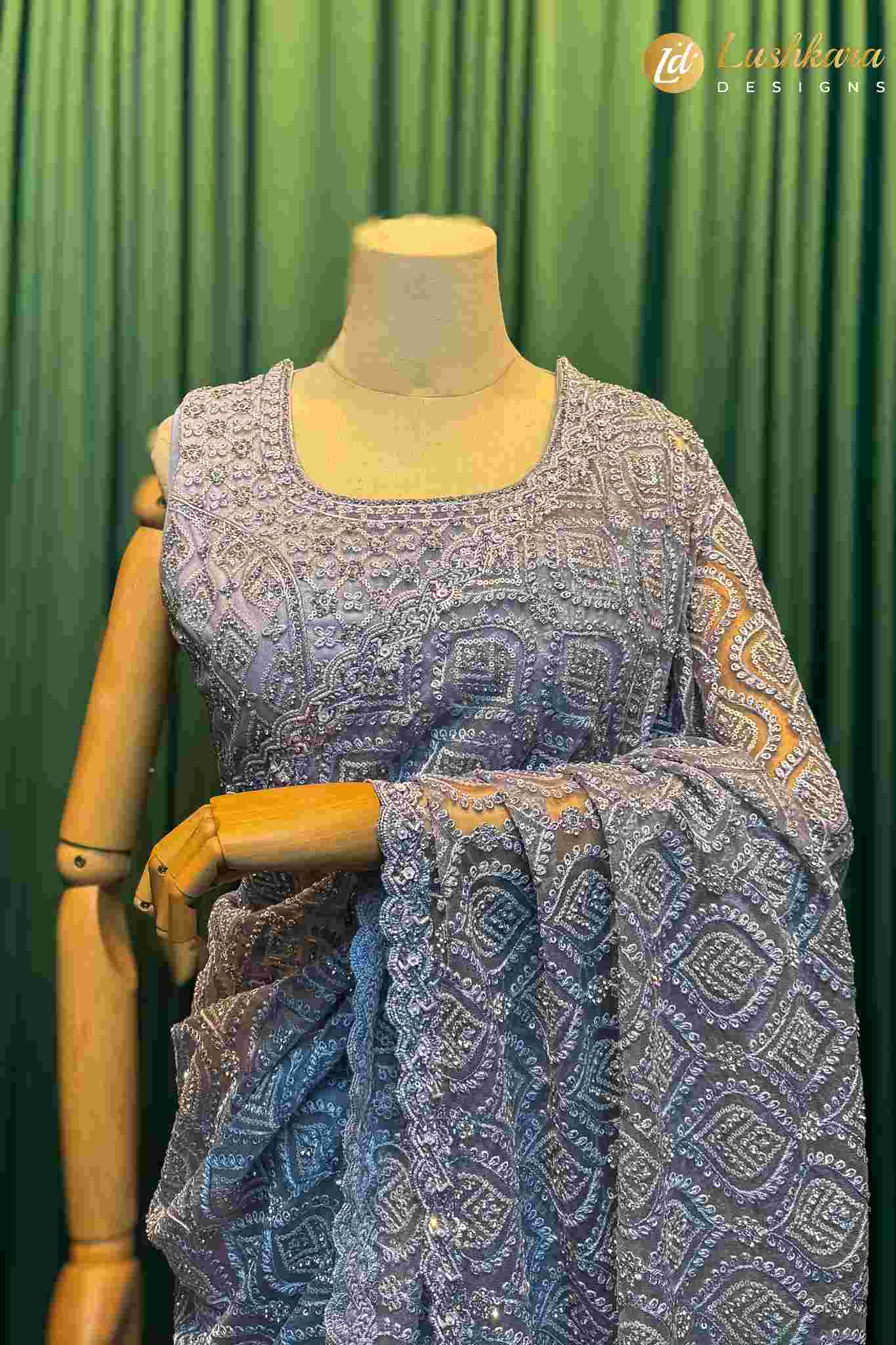 Lushkara Lavender Embroidered Saree