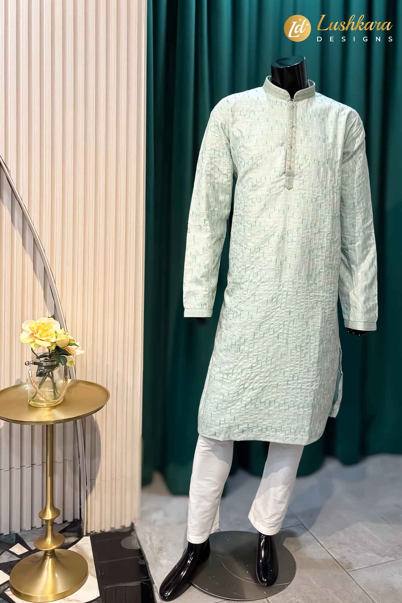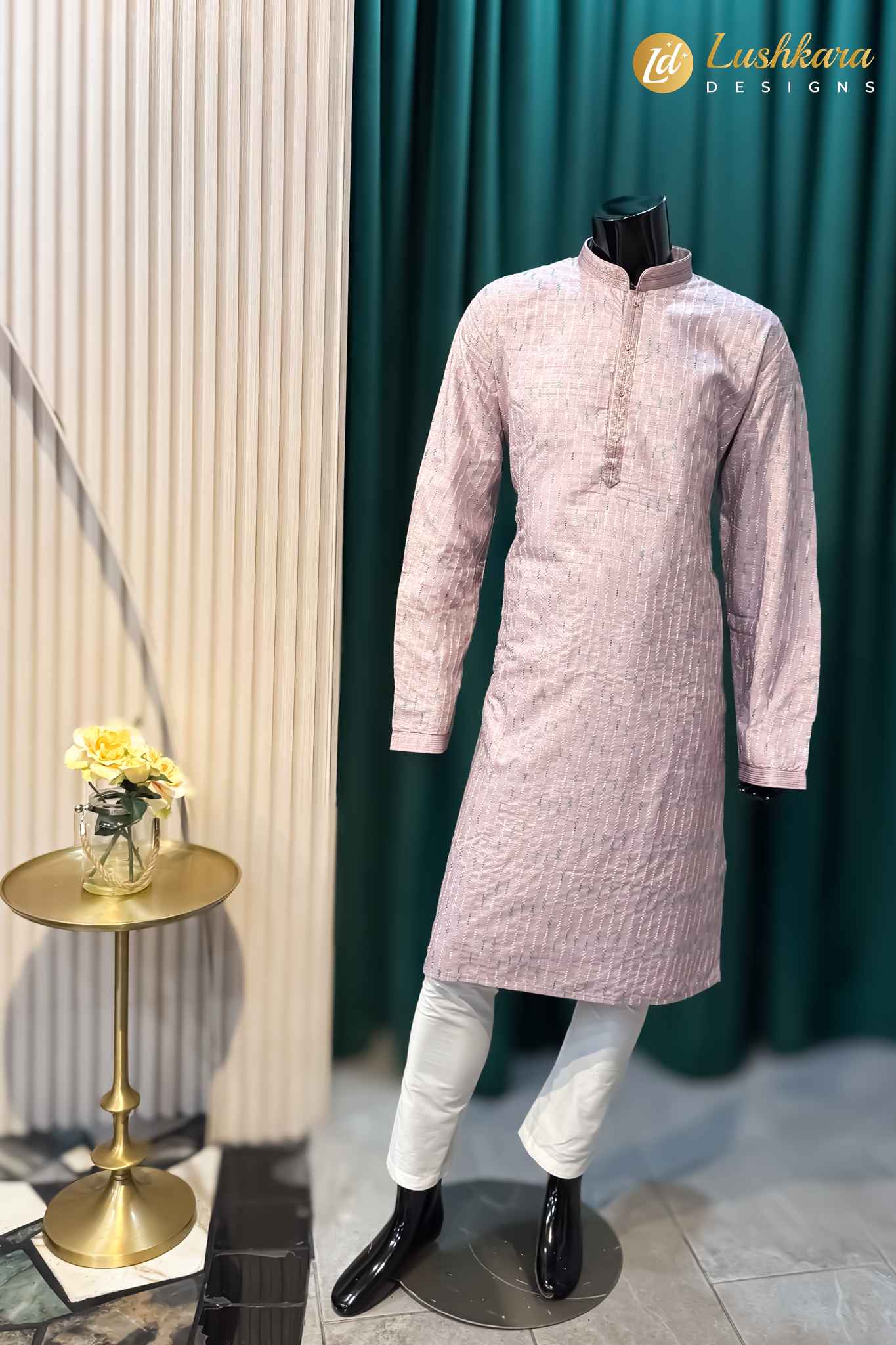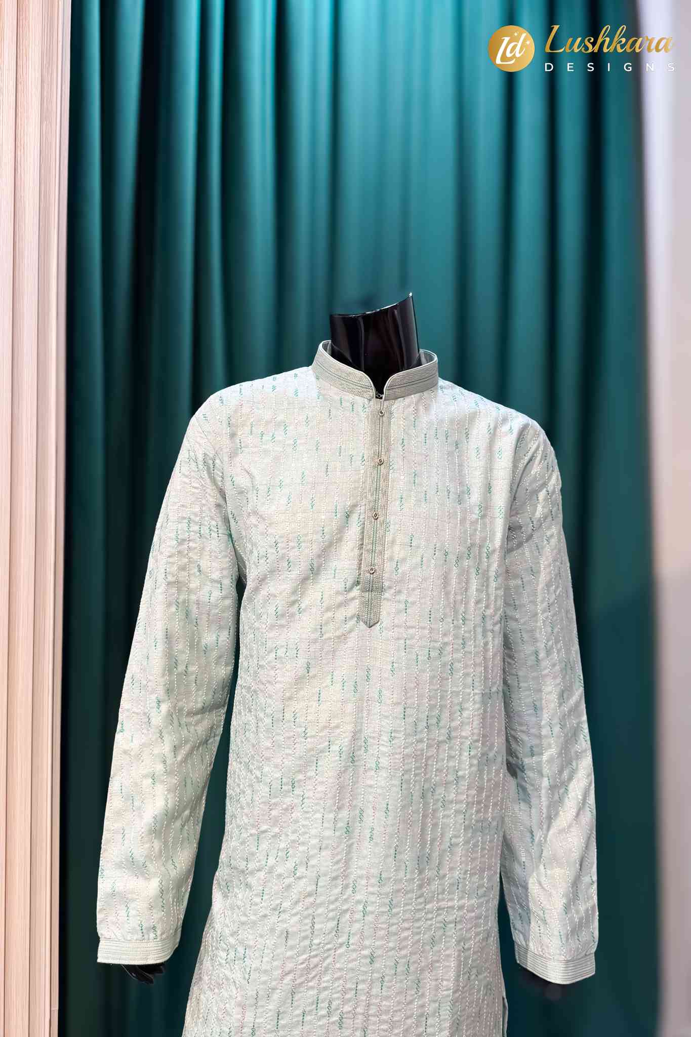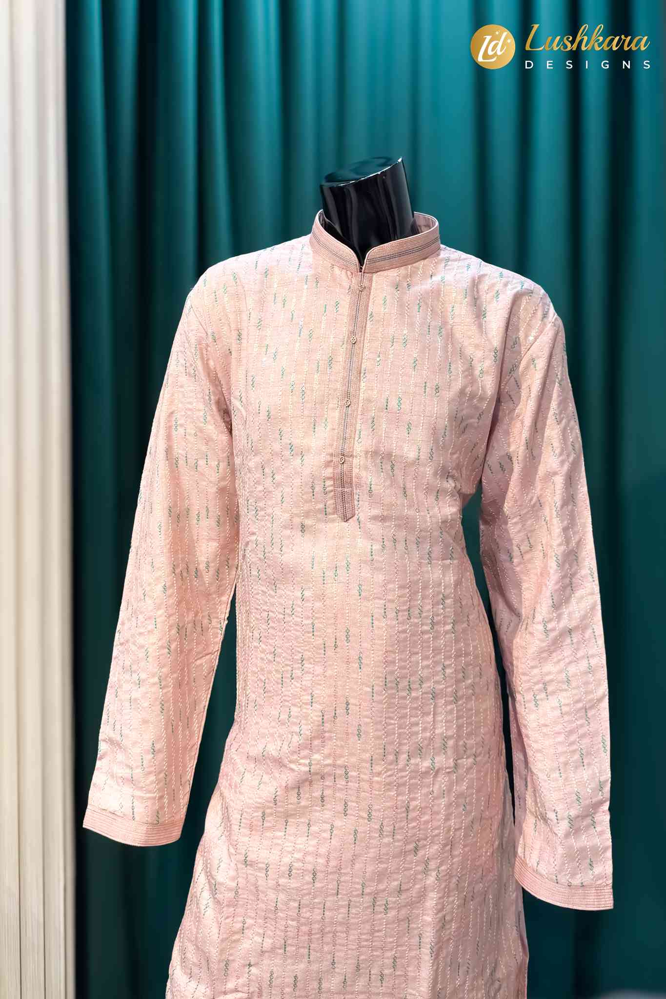 Fabric: Premium silk-blend fabric with an elegant textured weave