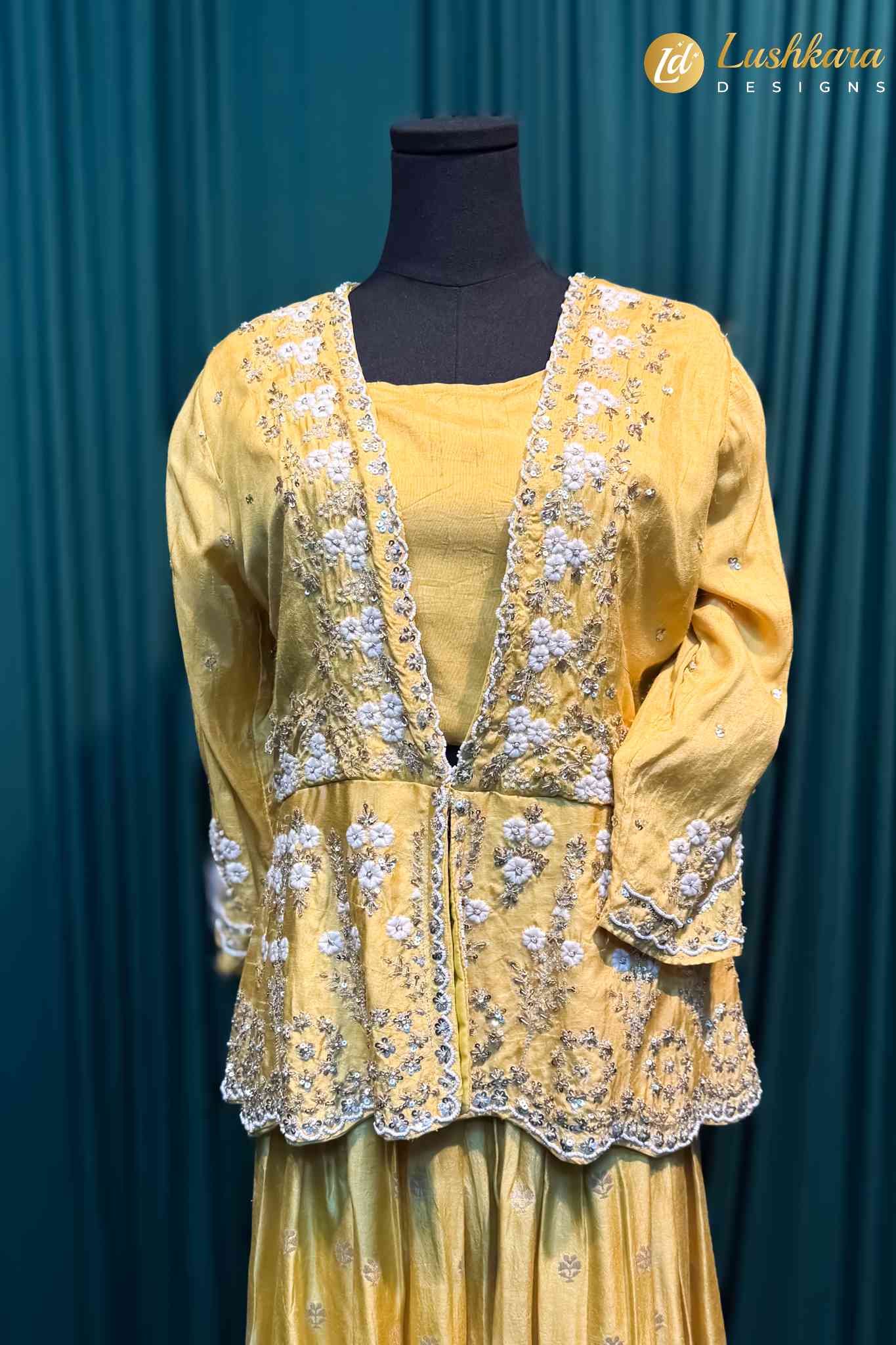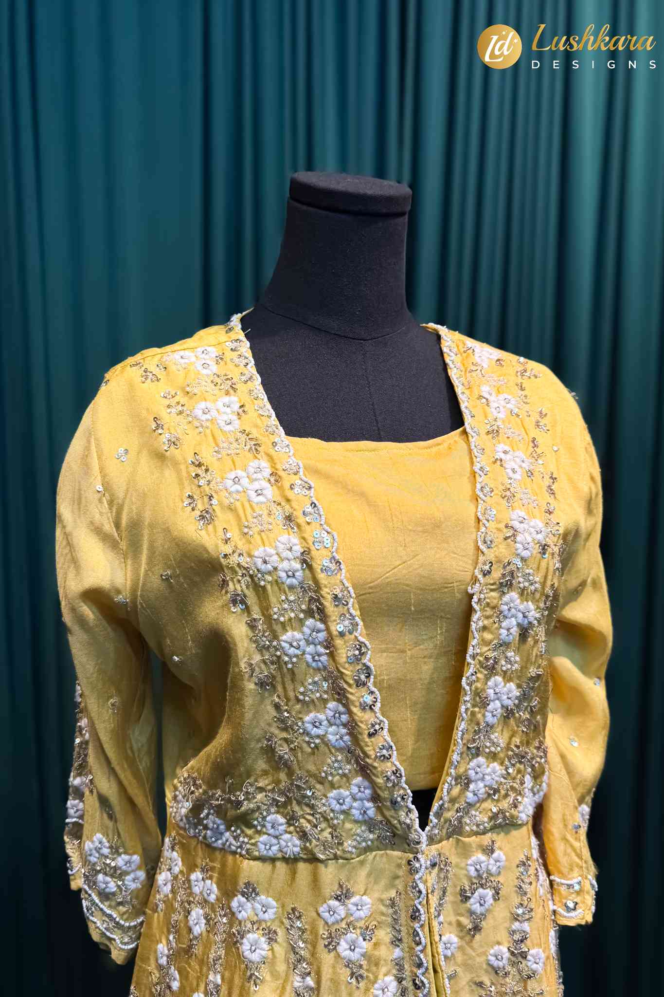 Lushkara Yellow Indo Western Embroidered Jacket Set
