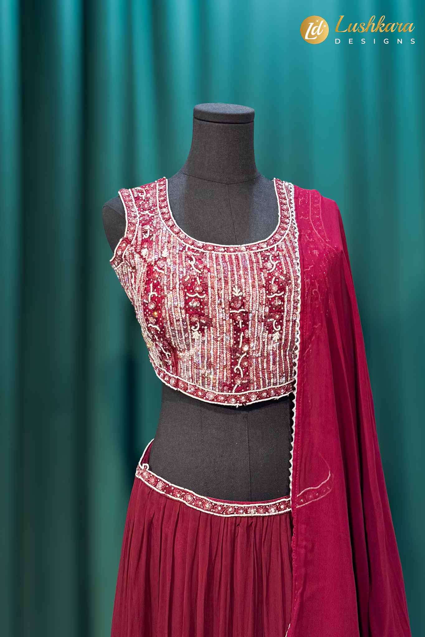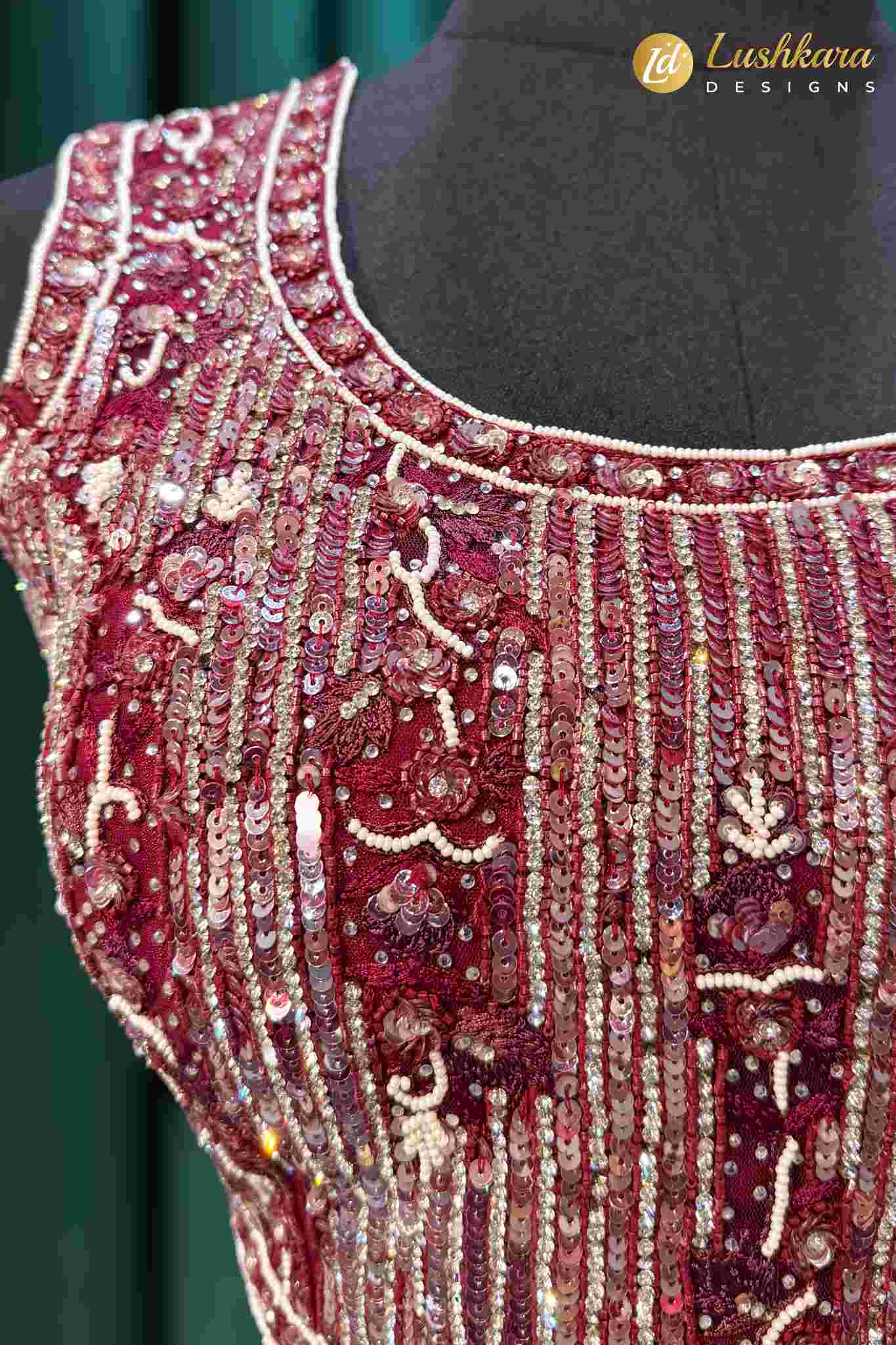 Dupatta: Matching maroon net dupatta with elegant border finish