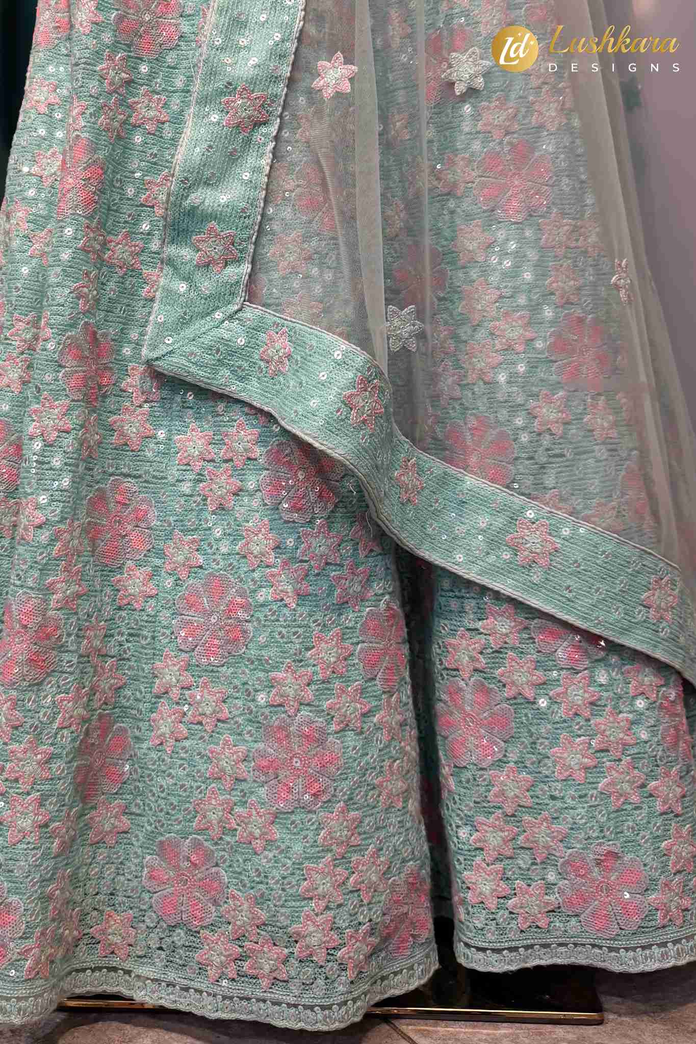 Dupatta: Included โ mint green net dupatta with embroidered border detailing