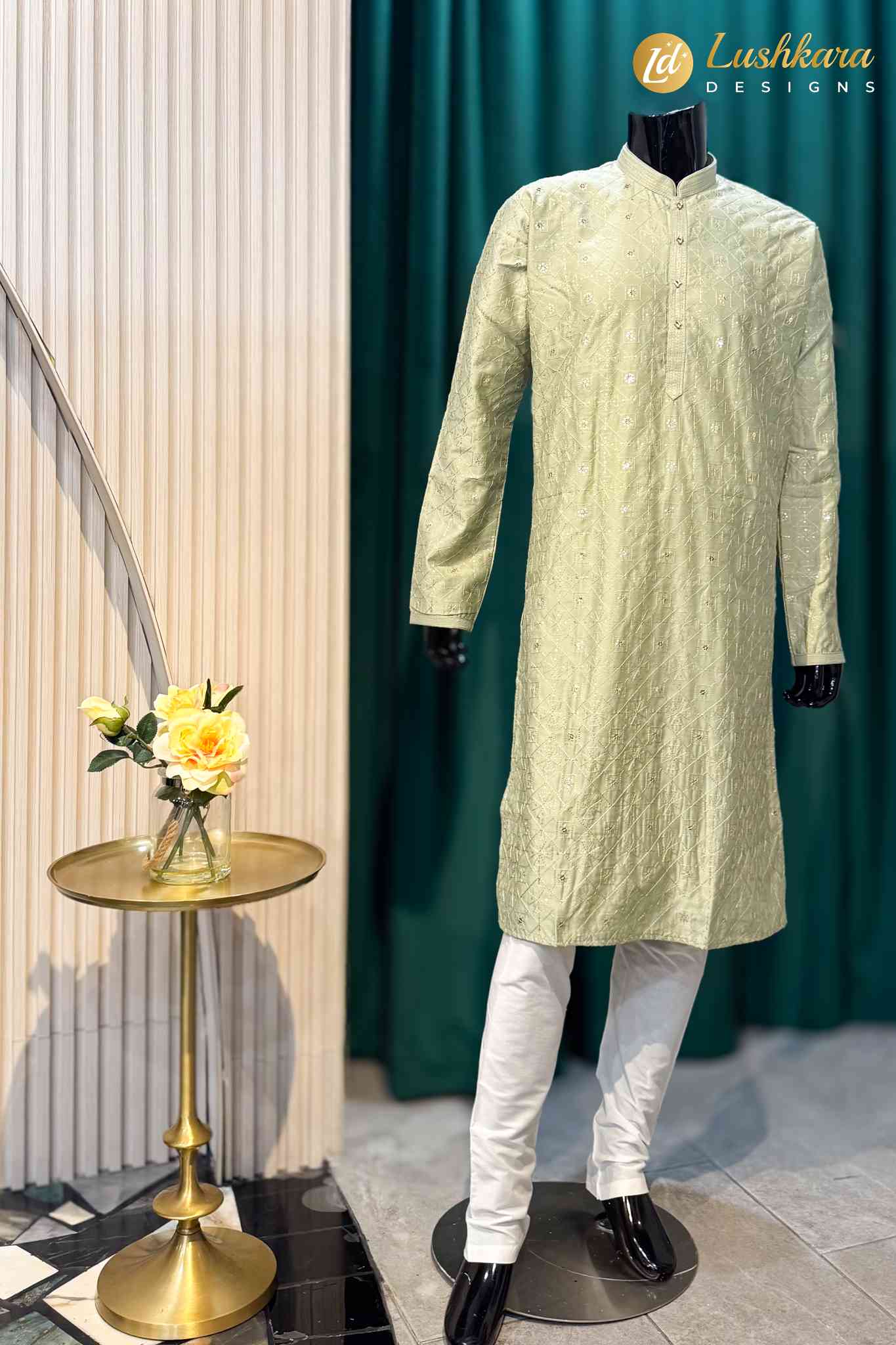 Color: Soft pastel green with an elegant sheen