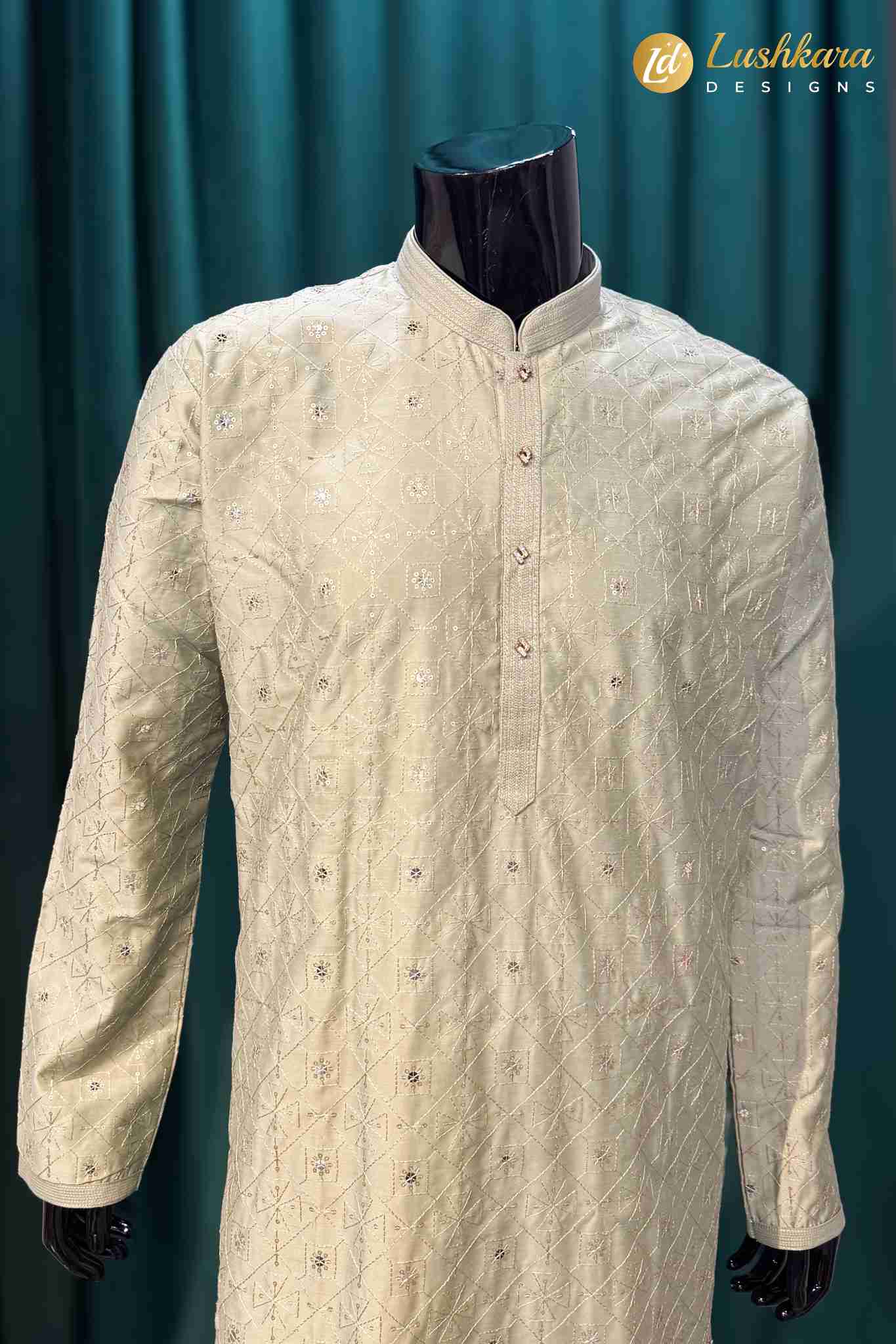 Fabric: Premium silk-blend fabric with a lightly textured finish