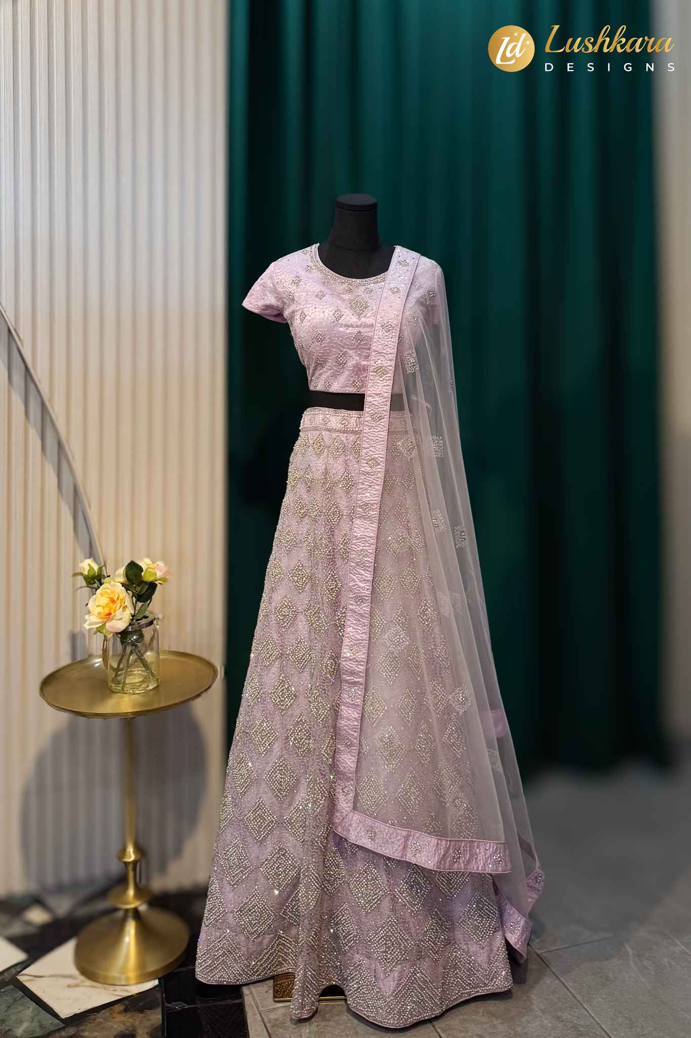 Fabric: Embroidered lehenga with matching blouse and lightweight net dupatta