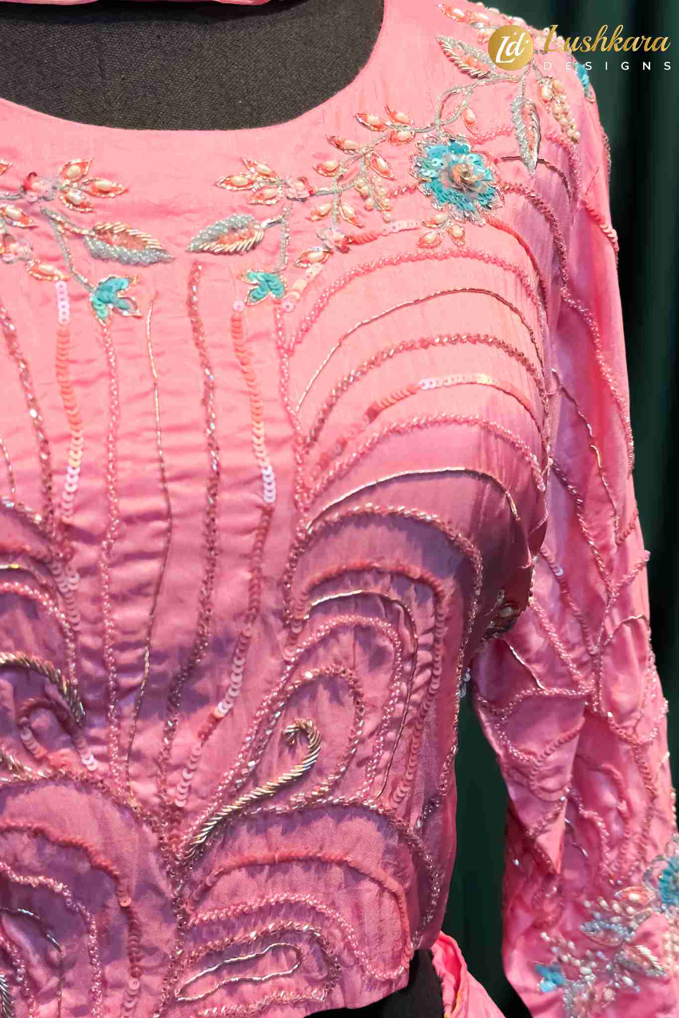 Work: Hand-embroidered crop top with sequins & thread detailing