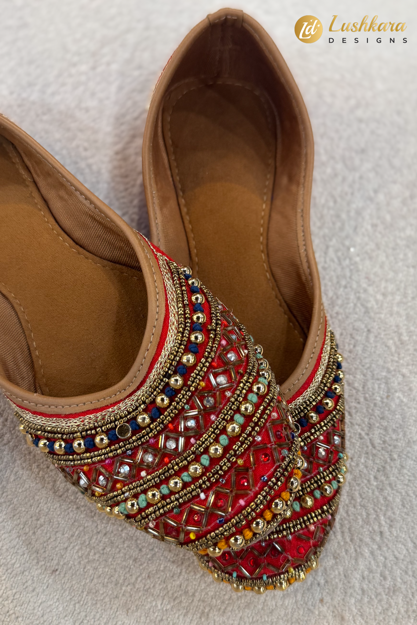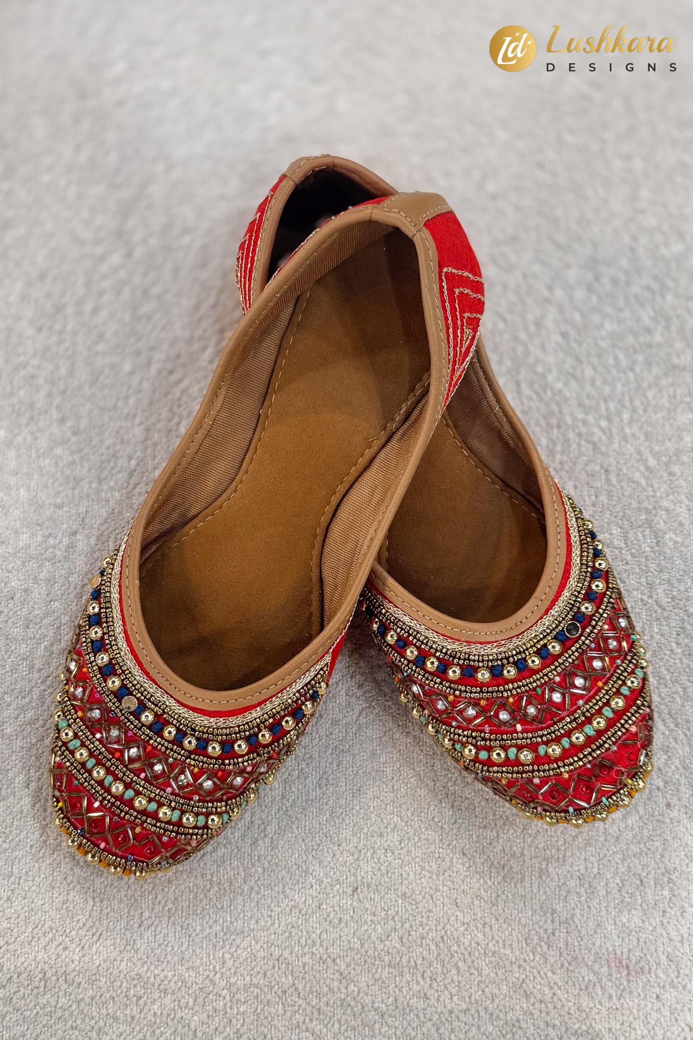 Lushkara Red Bridal Stone & Mirror Work Jutti