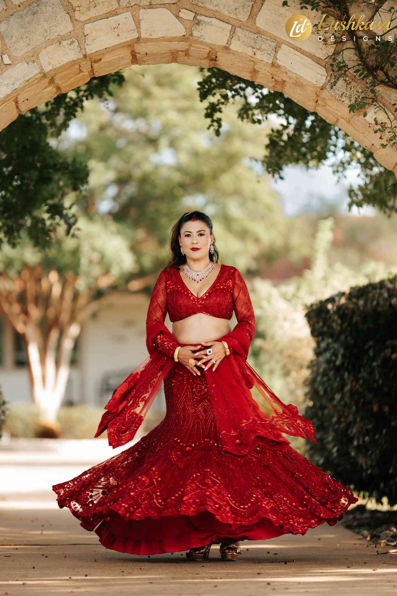 Lushkara Red Heavy Sequin Bridal Lehenga